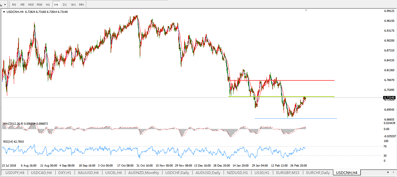 技术面简析:4小时图均线金叉延续,MACD上破0轴且动能继续放量,RSI维持整理上攻态势,汇价上行至多空转折区域附近,上方压制强劲,等待中美贸谈新进展指引方向。