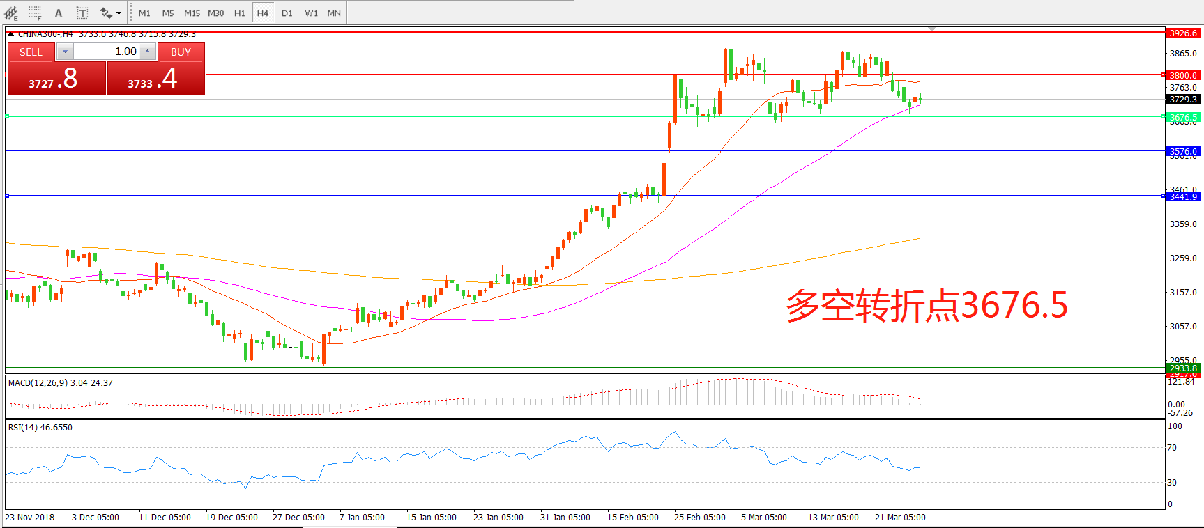 多空转折点:3676.50