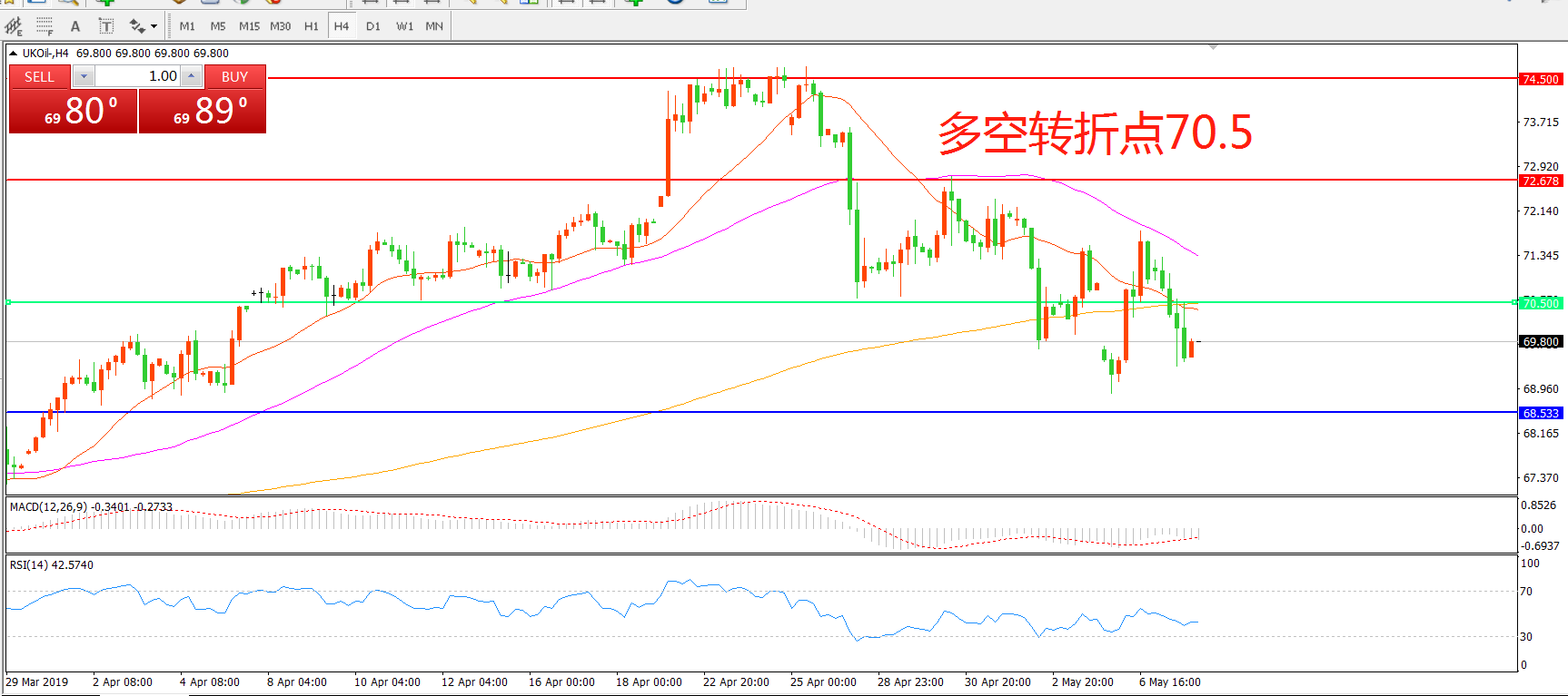 多空转折点:70.50