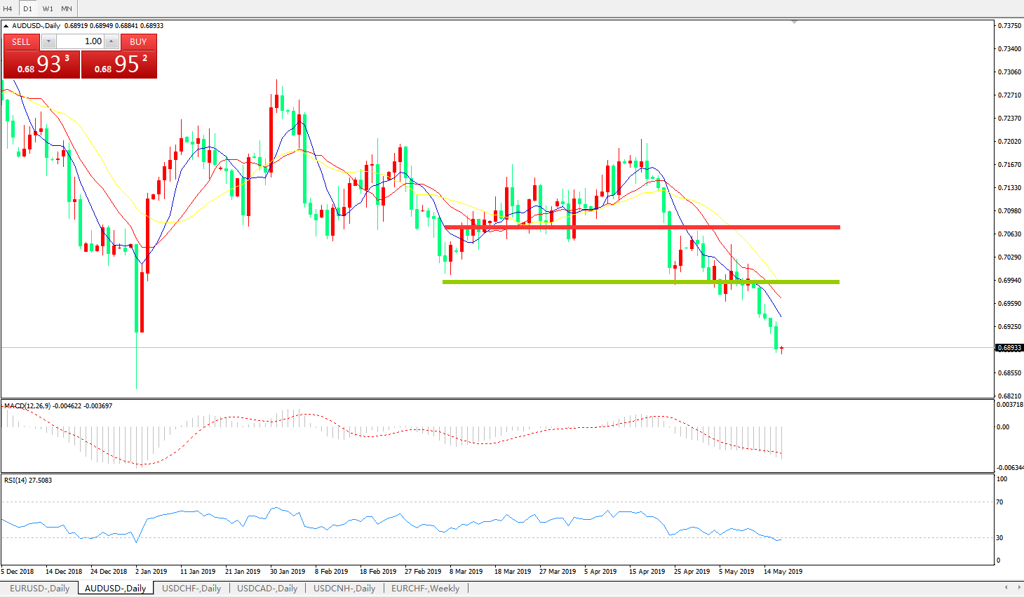 交易策略:在0.7000之下,看跌,目标价位为0.6900,然后为0.6830