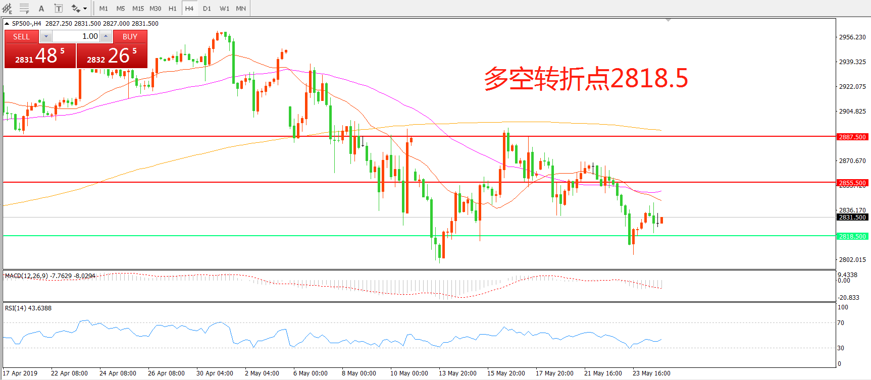 贸易战恐慌情绪下,上周三大美股指数延续了下跌走势,标普500指数下跌1.17%,连续三周下跌,本月中旬特朗普政府发布的针对华为等公司的限制交易令使美国相关科技股元气大伤。2018年末华为公布的92家核心供应商名单显示,总部在美国的公司由33家,占比超三分之一,周五美国公布的数据显示,五月美国Markit服务业PMI初值降至50.9,创近三年新低,创2009年以来的新低。