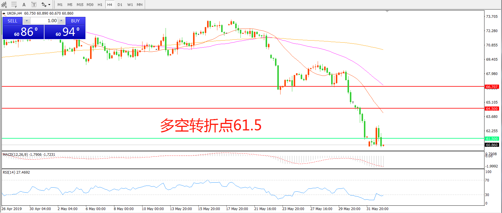 多空转折点:61.50