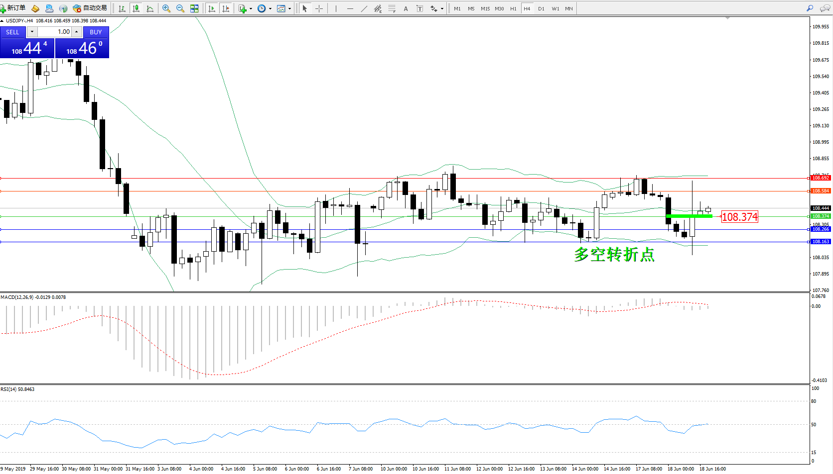 交易策略:108.374上方看涨,目标108.584108.692