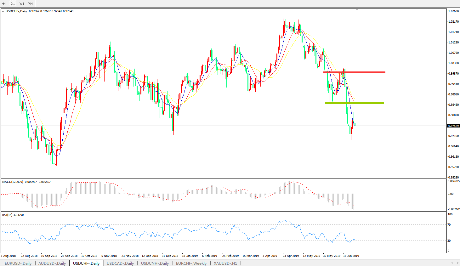 美元兑瑞郎USDCHF 日线图: