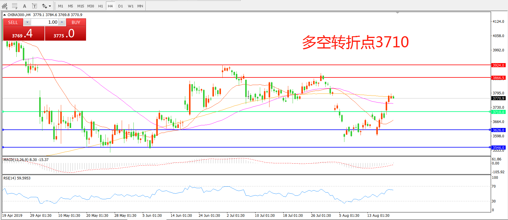 多空转折点:3710.00