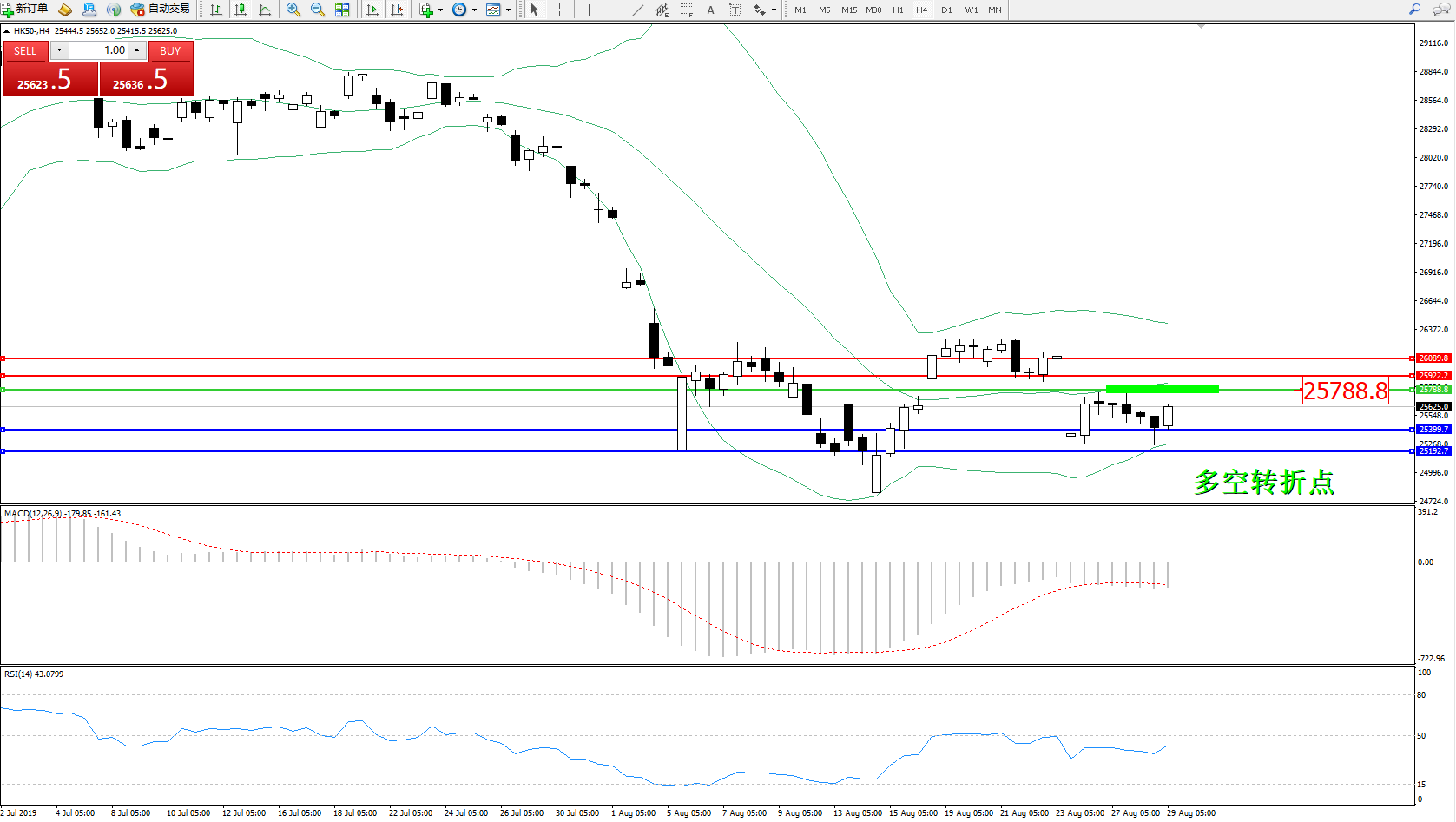 恒指HK50 ——4小时K线图显示: