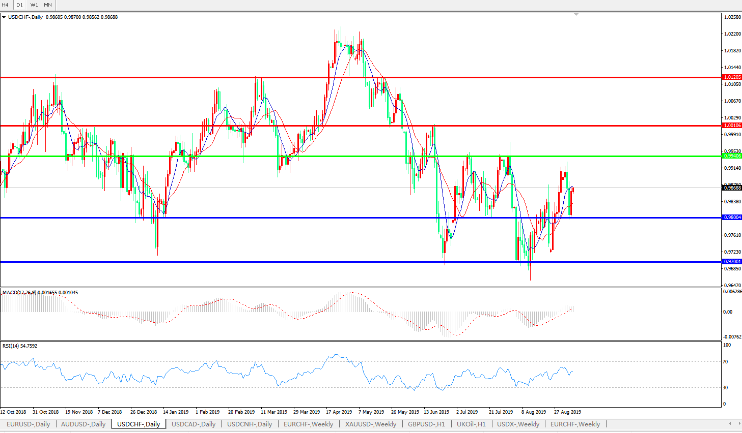 美元兑瑞郎USDCHF 日线图: