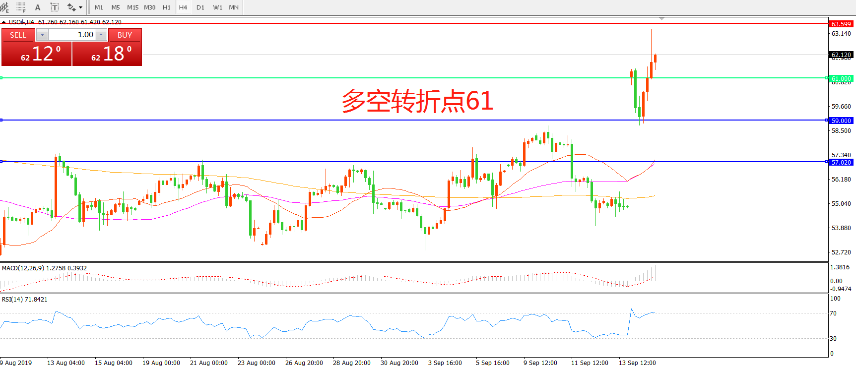 多空转折点:61.00