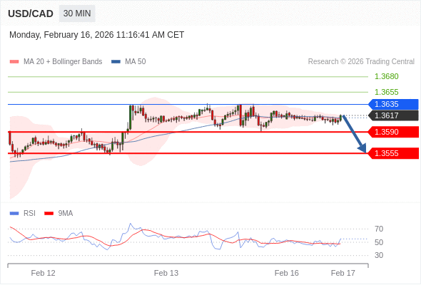 在 1.3635 之下,看跌,目标价位为 1.3590 ,然后为 1.3555 。