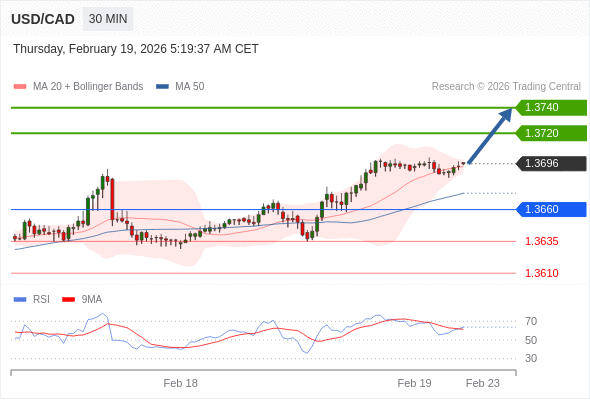 在 1.3660 之上,看涨,目标价位为 1.3720 ,然后为 1.3740 。