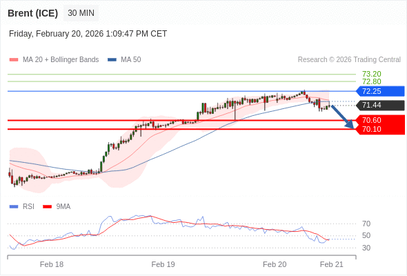 在 72.25 之下,看跌,目标价位为 70.60 ,然后为 70.10 。