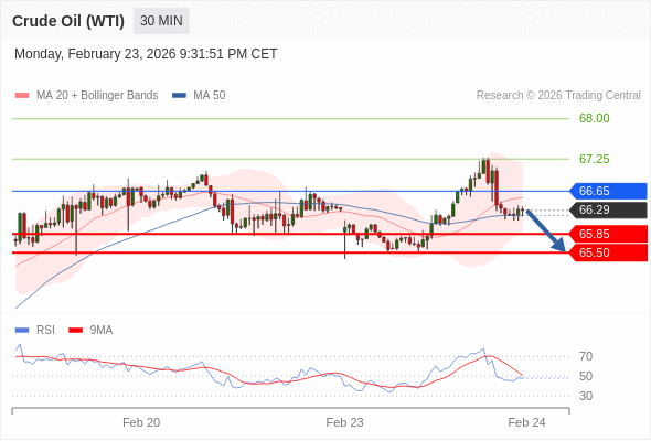 交易策略: 在 66.65 之下,看跌,目标价位为 65.85 ,然后为 65.50 。