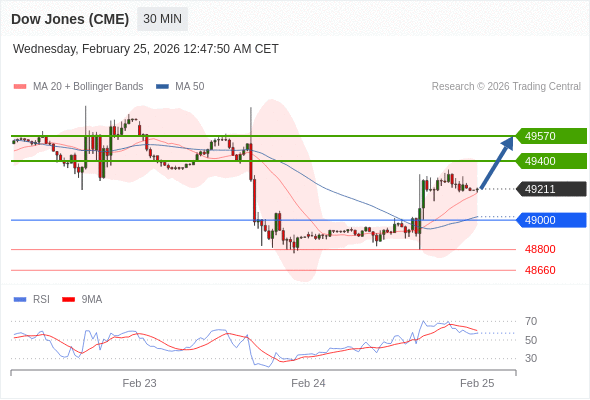 在 49000 之上,看涨,目标价位为 49400 ,然后为 49570 。