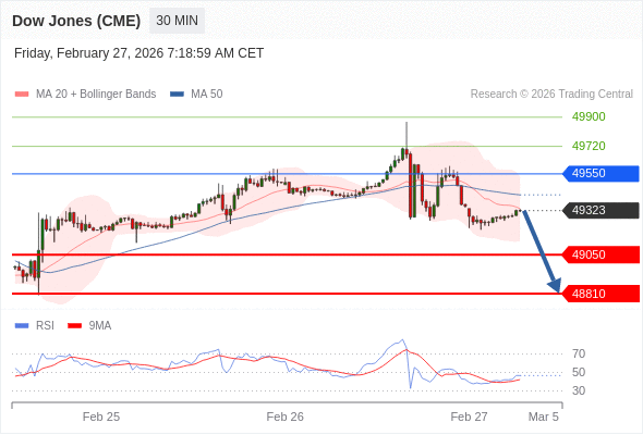 在 49550 之下,看跌,目标价位为 49050 ,然后为 48810 。