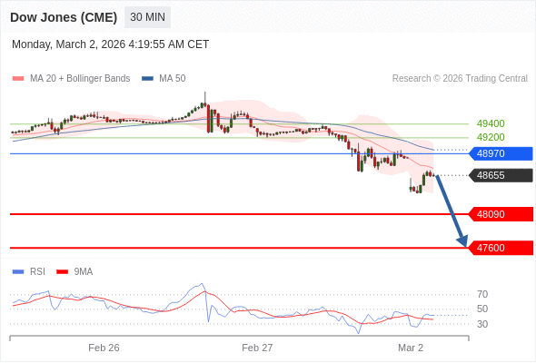 在 48970 之下,看跌,目标价位为 48090 ,然后为 47600 。