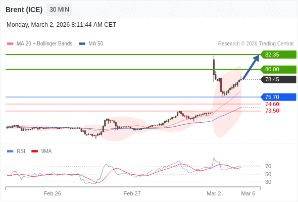 交易策略: 在 75.70 之上,看涨,目标价位为 80.00 ,然后为 82.35 。