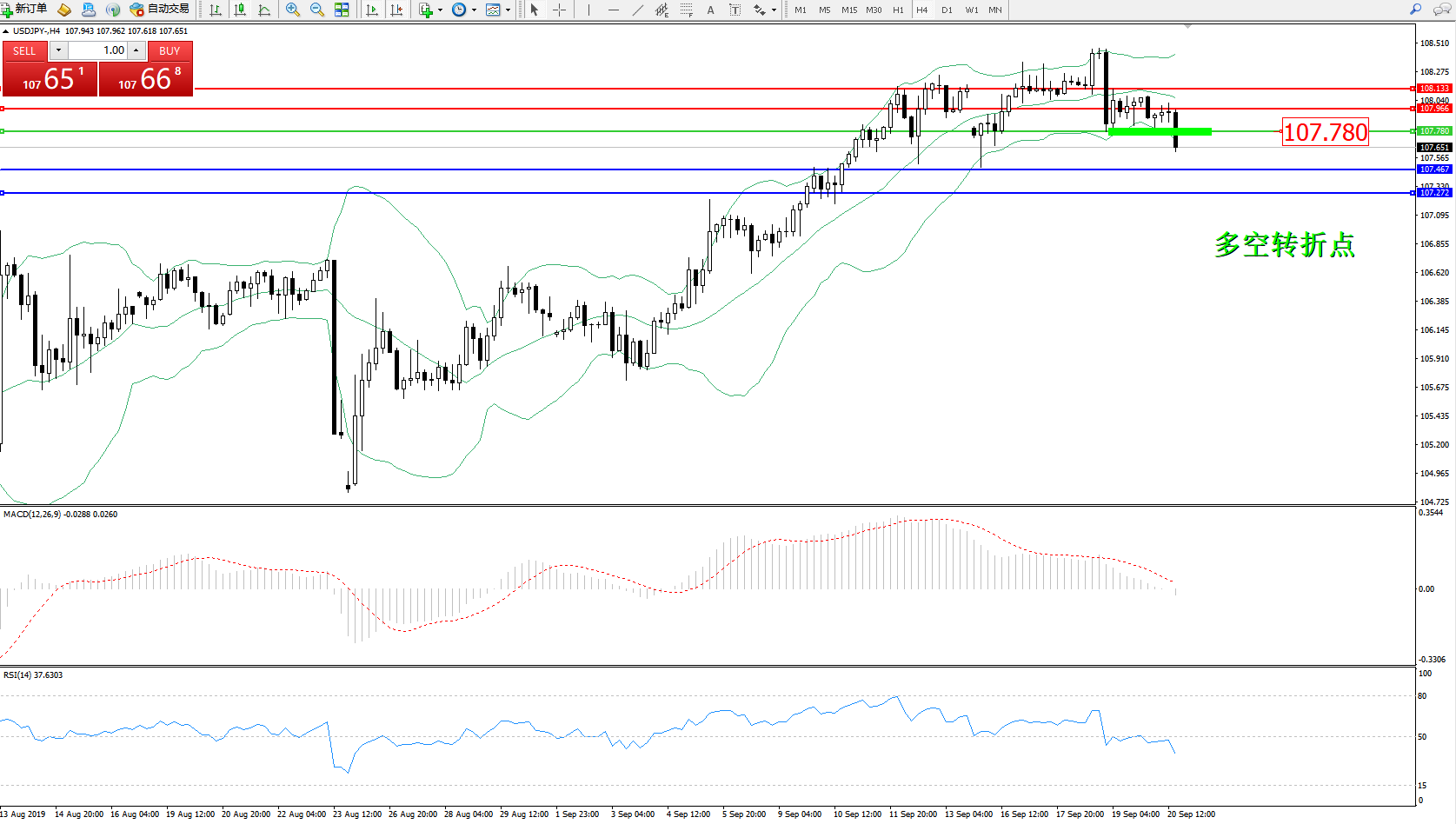 备选策略:107.780上方看涨,目标107.966108.133