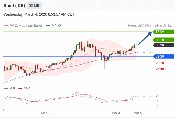 在 81.30 之上,看涨,目标价位为 85.10 ,然后为 87.00 。