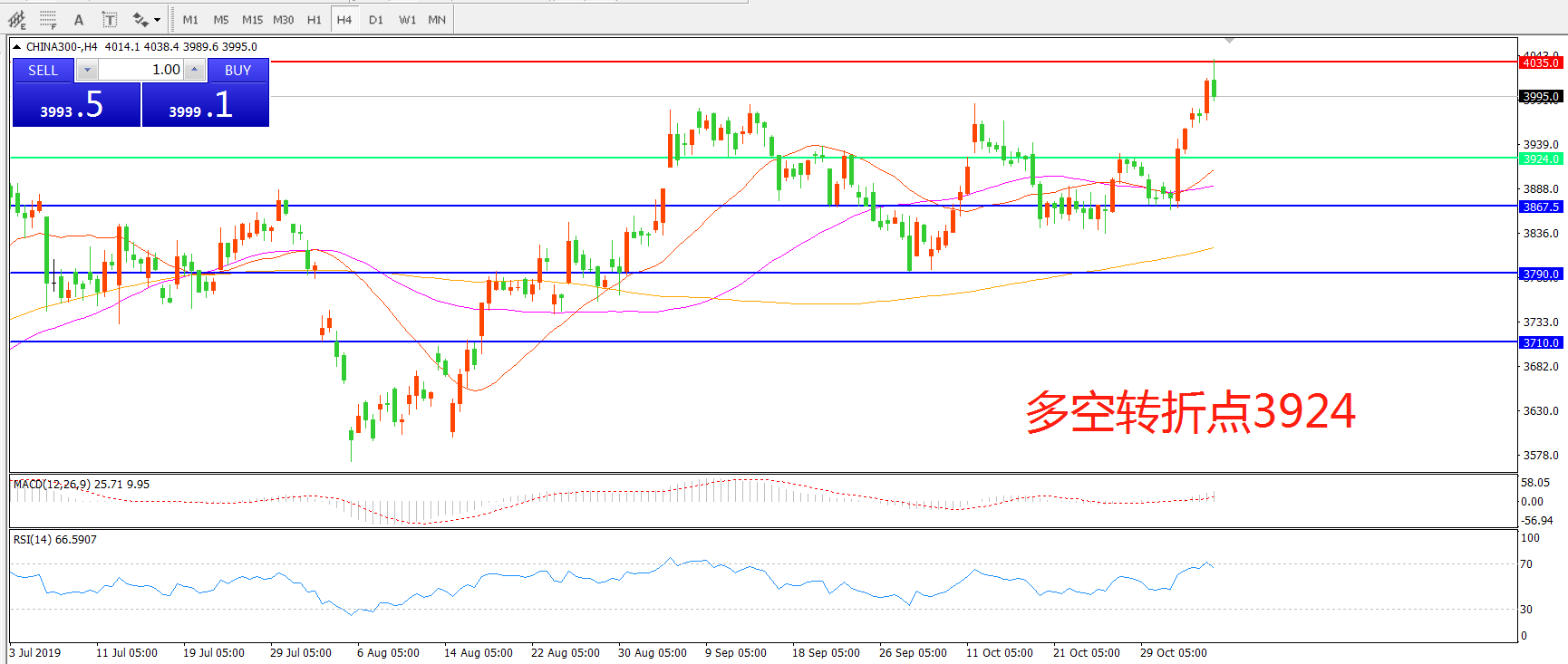 多空转折点:3985.00