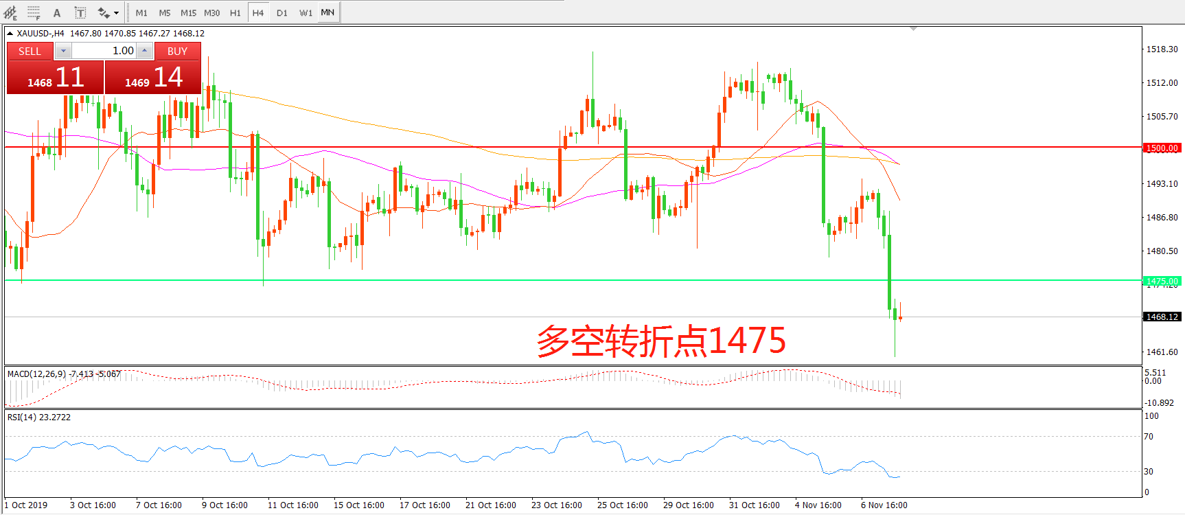 多空转折点:1475.00