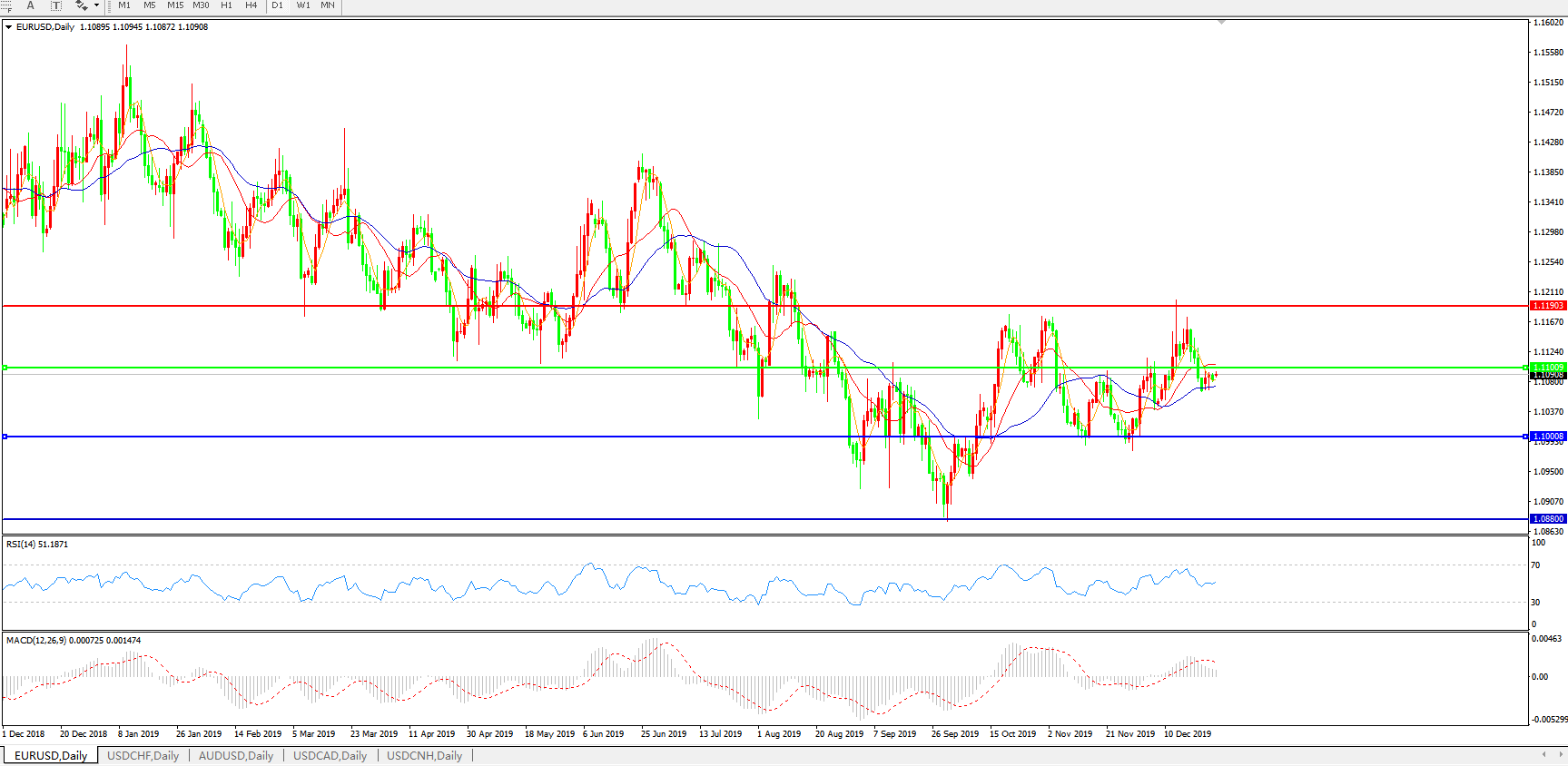 交易策略:1.1100下方看跌,目标1.1000、1.0880