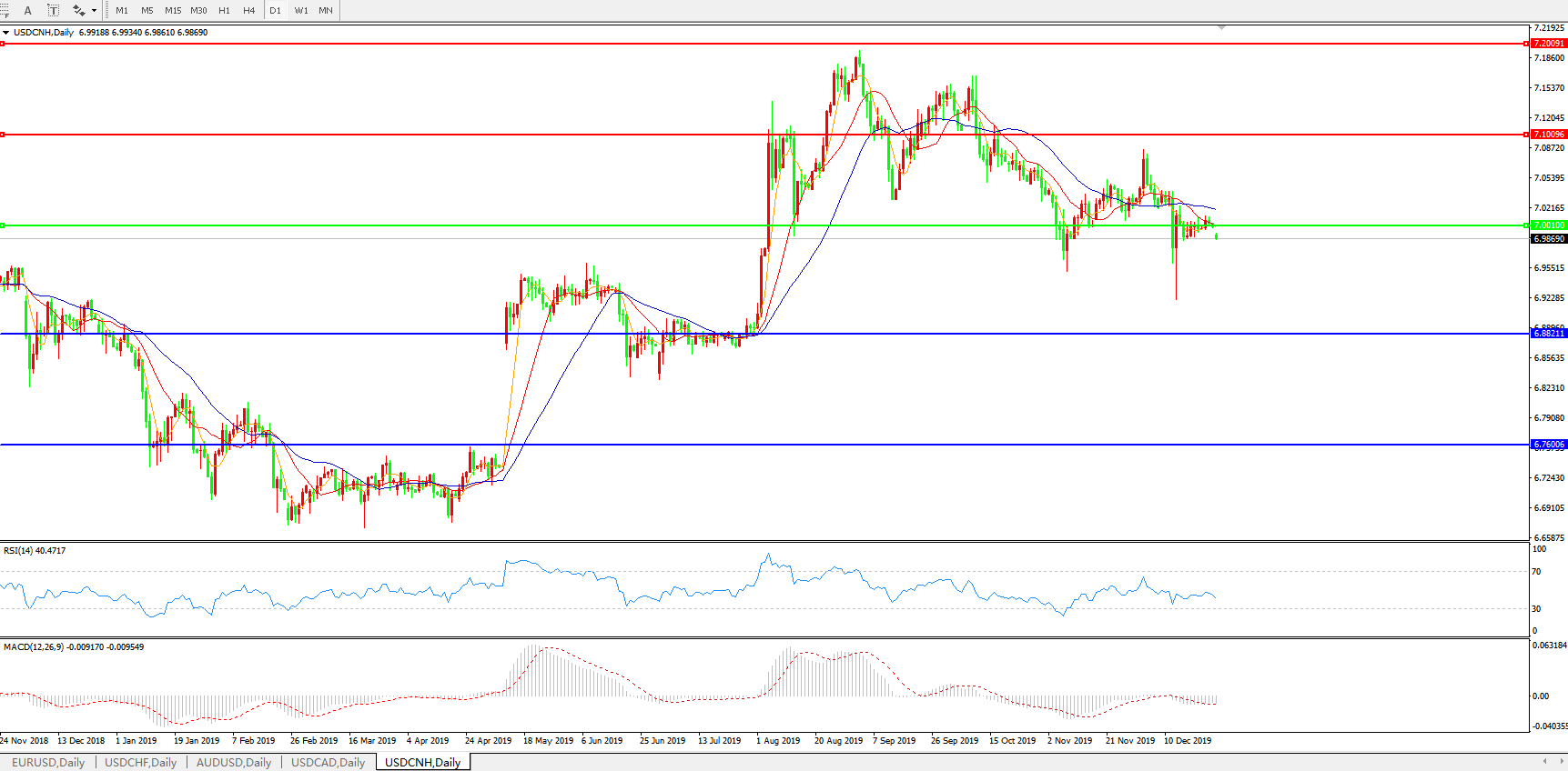交易策略: 在7.0000之下,看跌,目标价位为6.8820,然后为6.7600。