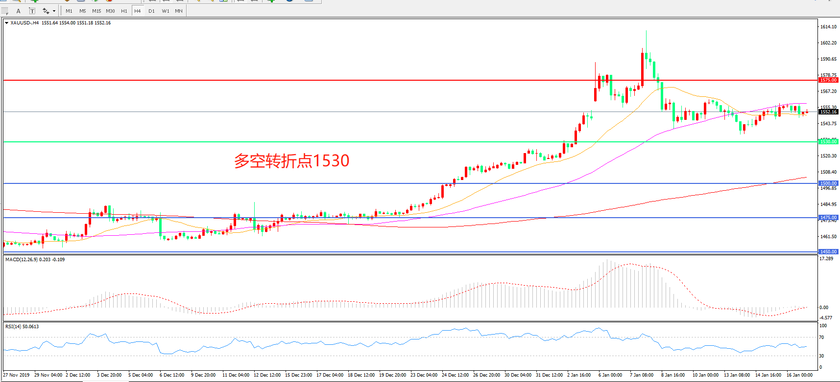 多空转折点:1530.00