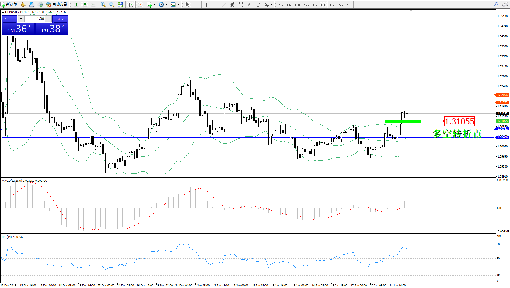 交易策略:1.31055上方看涨,目标1.317721.32066
