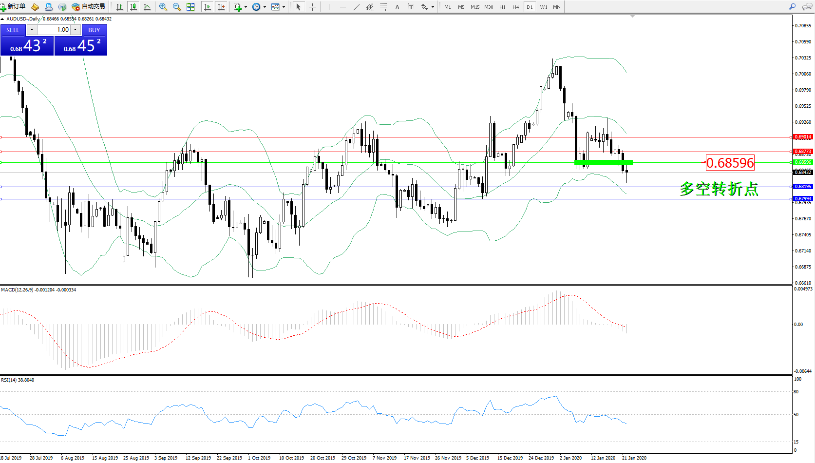 交易策略:0.68596下方看跌,目标0.681950.67994