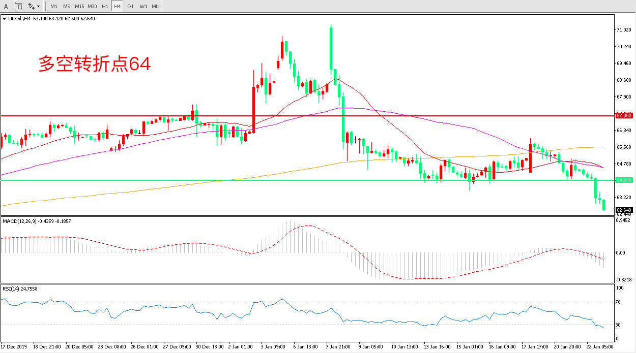 交易策略:在64.00之下看跌,目标62.00    60.00