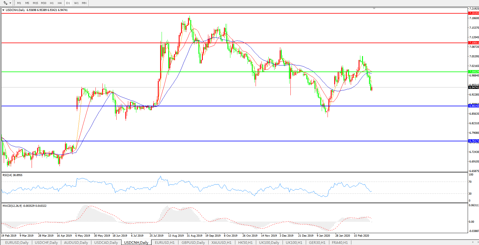 交易策略: 在7.0000之下,看跌,目标价位为6.8820,然后为6.7600。