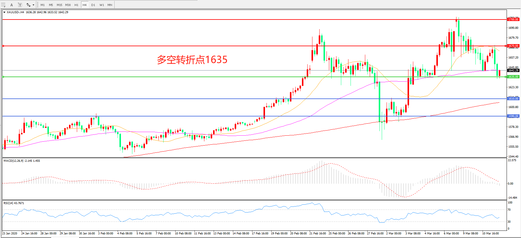 现货黄金XAU/USD 4小时图