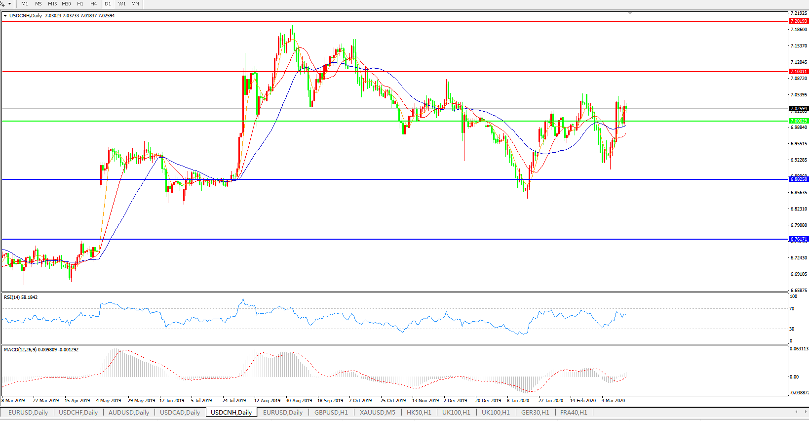 美元兑人民币USDCNH    日线图: