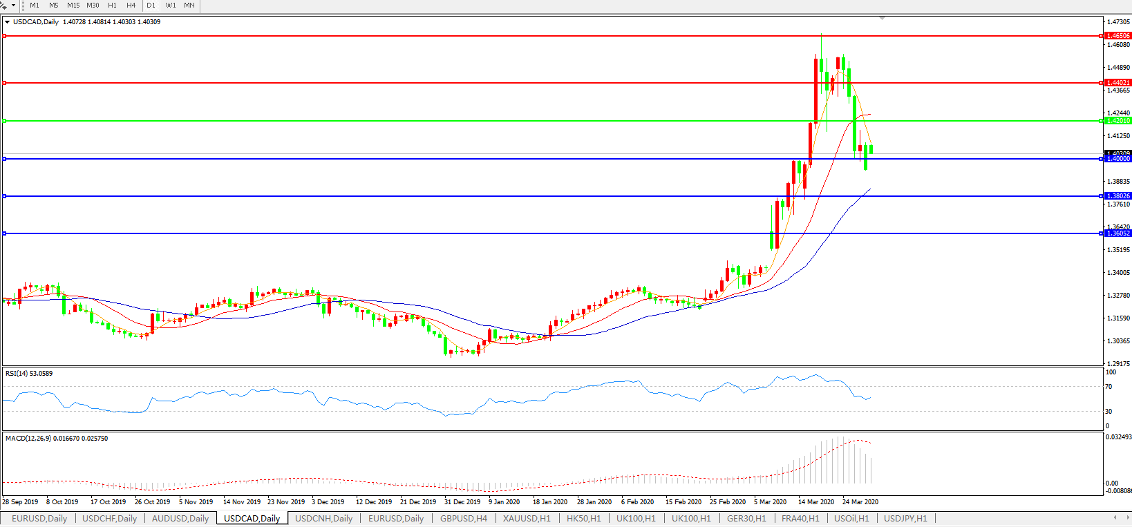 美元兑加元USDCAD    日线图: