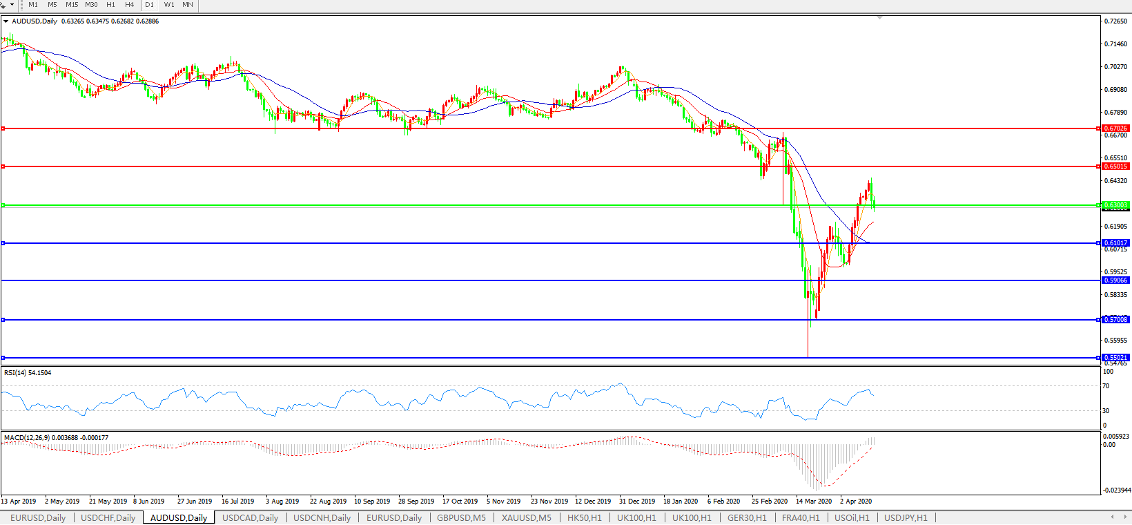 澳元兑美元AUDUSD 日线图: