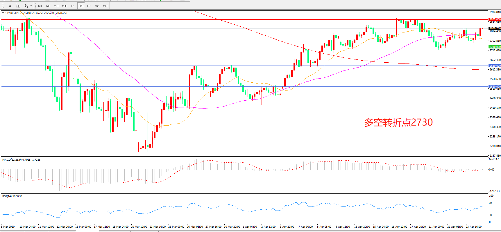 多空转折点:2730.00