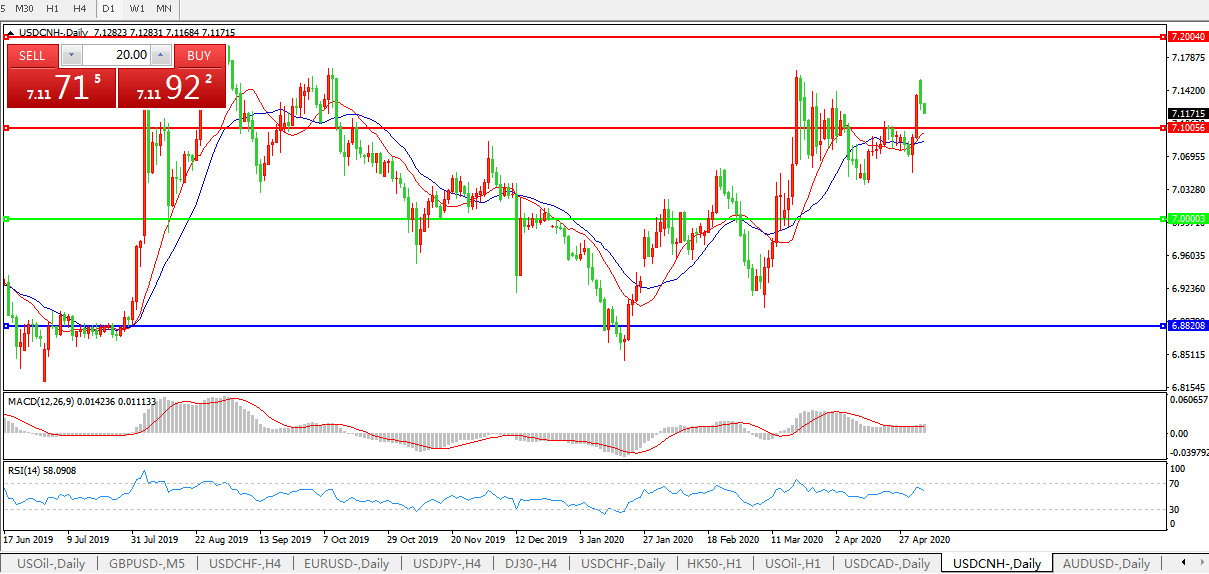 美元兑人民币USDCNH    日线图: