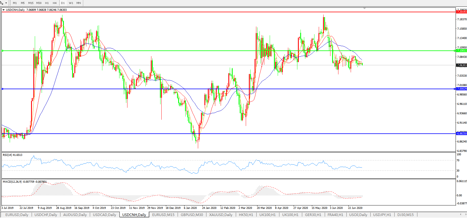 备选策略: 在7.1000之上,看涨,目标价位为7.2000,然后为7.3000。