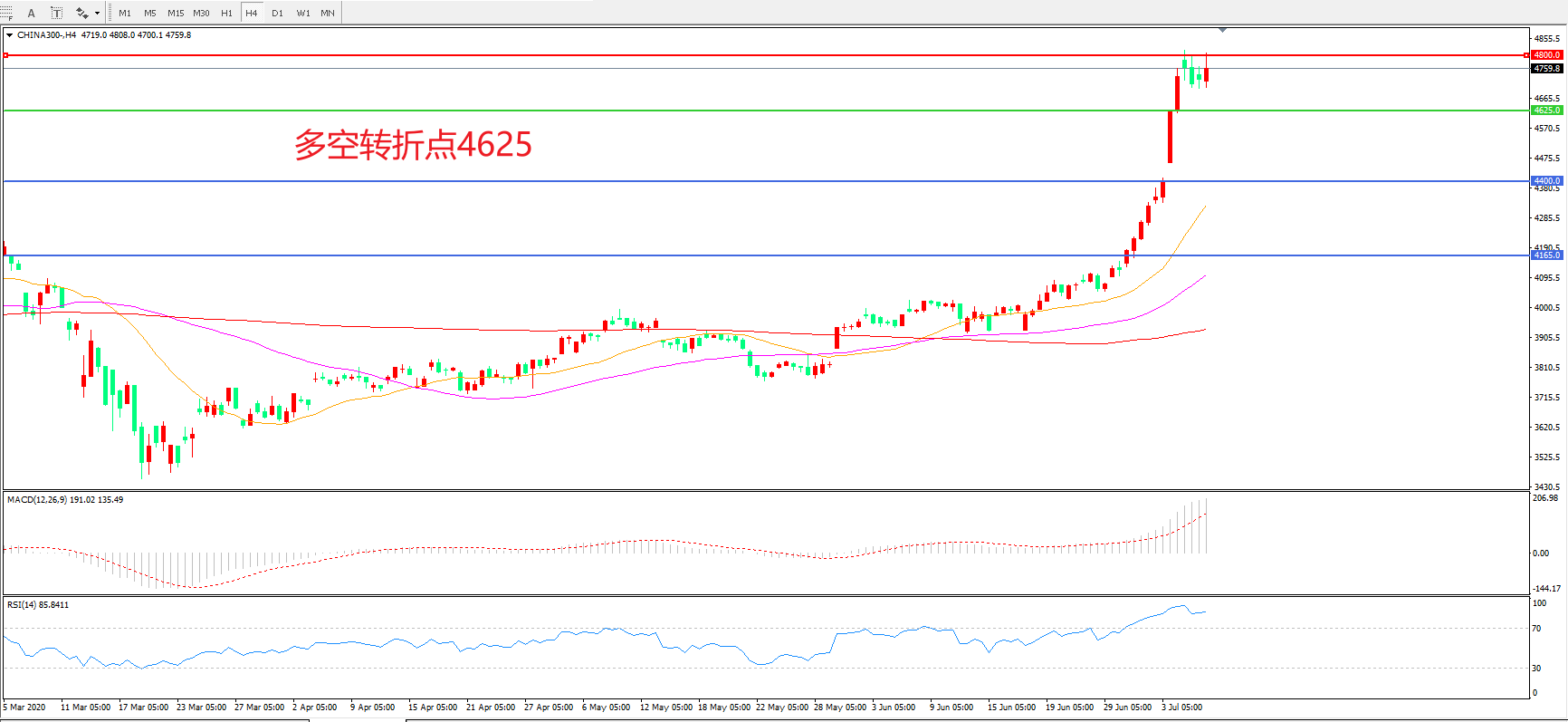 周三(7月8日),两市相对平开后三大指数展开剧烈震荡,仅半小时成交量就超5000亿,午后多方发起总攻,券商再度掀起涨停潮,沪深300震荡走高,收报4759.80点。截止昨日,A股已连续5个交易日成交额破万亿元,成功站上3400点关口,只要市场成交不出现过度放大,市场的总体趋势不会出现太大问题。