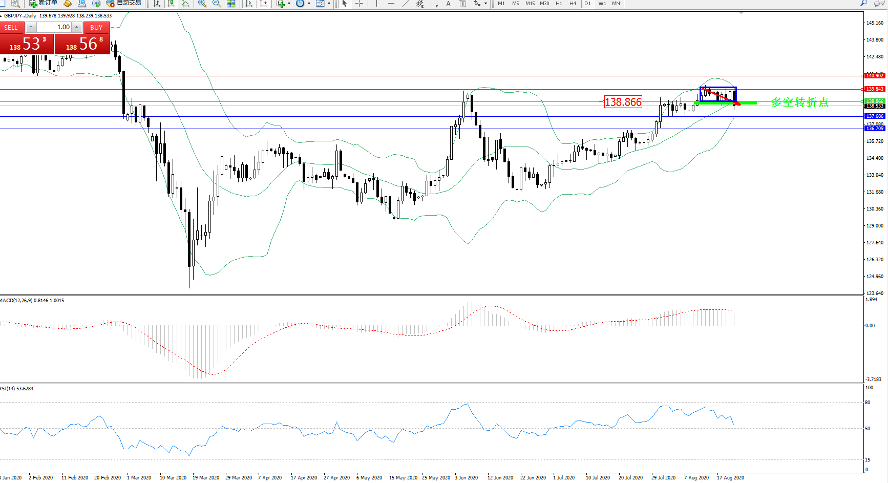 备选策略:138.866上方看涨,目标139.843、140.902