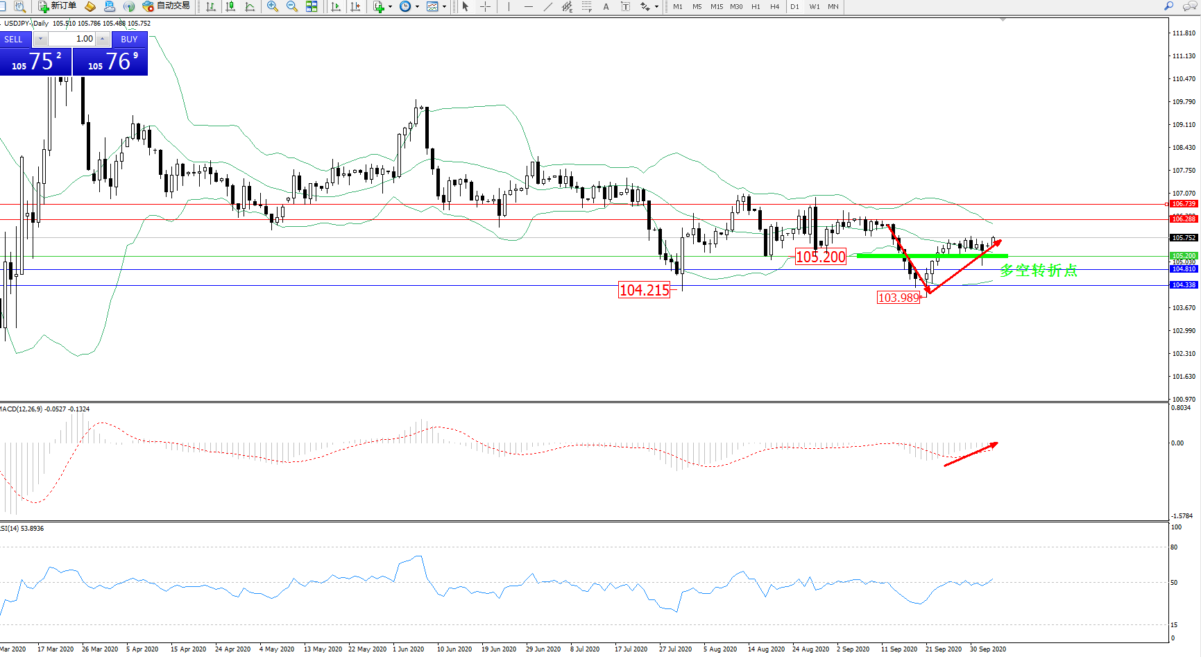 多空转折点:105.200
