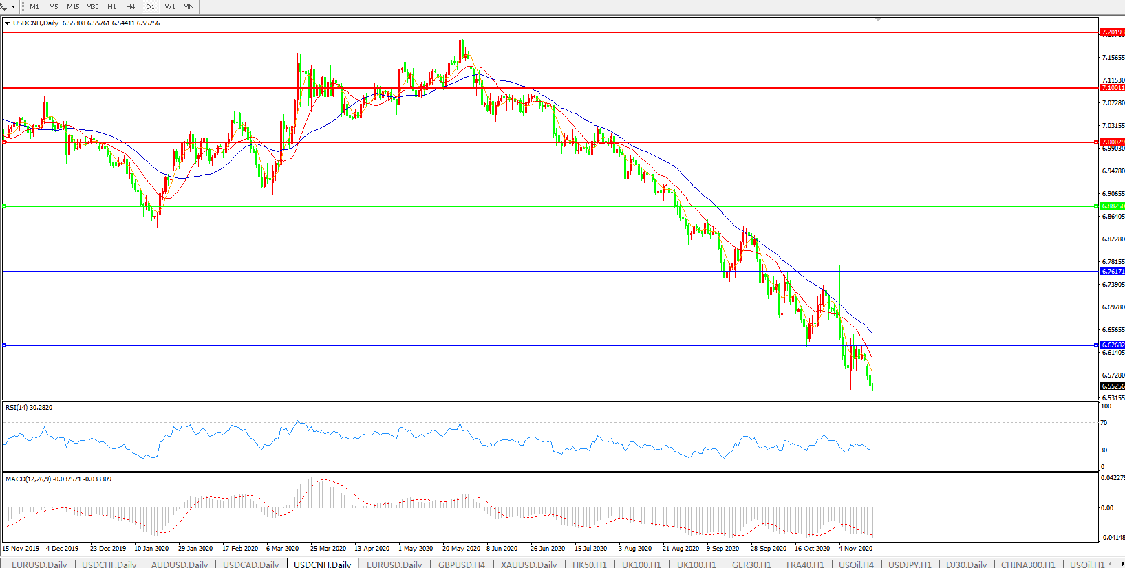 美元兑人民币USDCNH    日线图:
