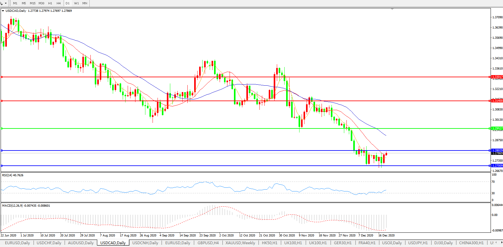 美元兑加元USDCAD 日线图: