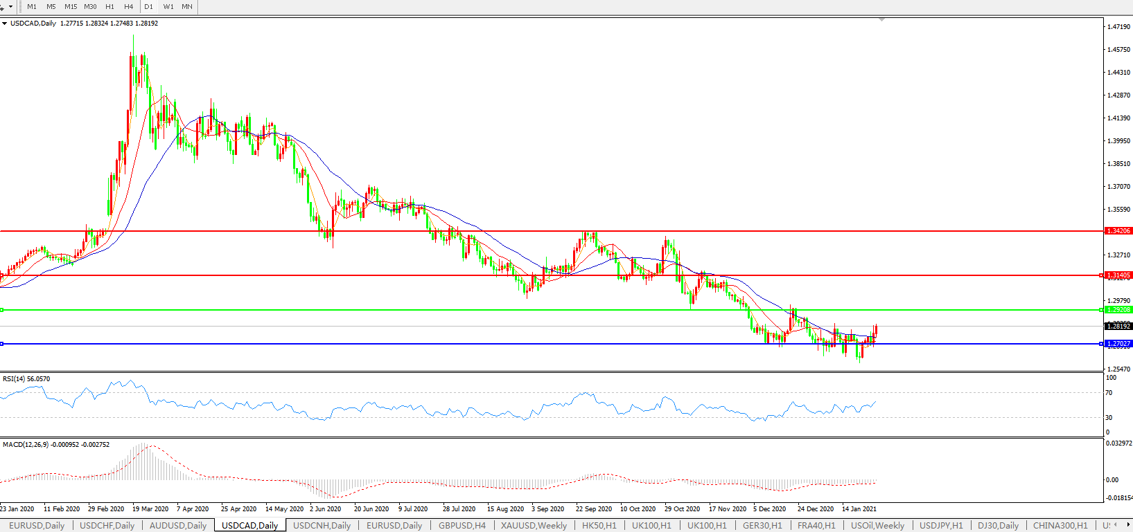 美元兑加元USDCAD    日线图: