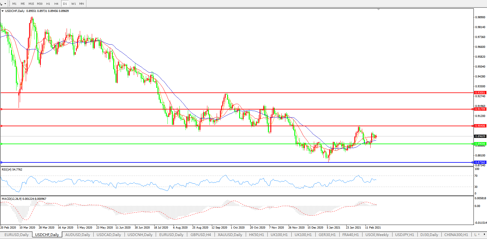 美元兑瑞郎USDCHF 日线图: