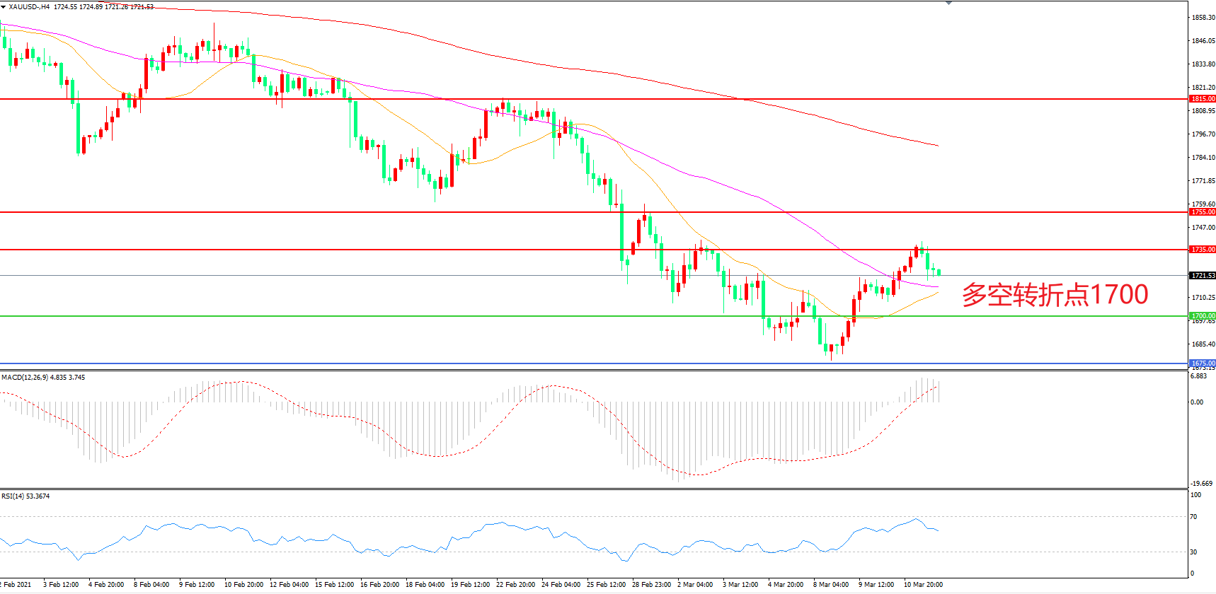 交易策略:在1700.00之上看涨,目标1735.00 1755.00