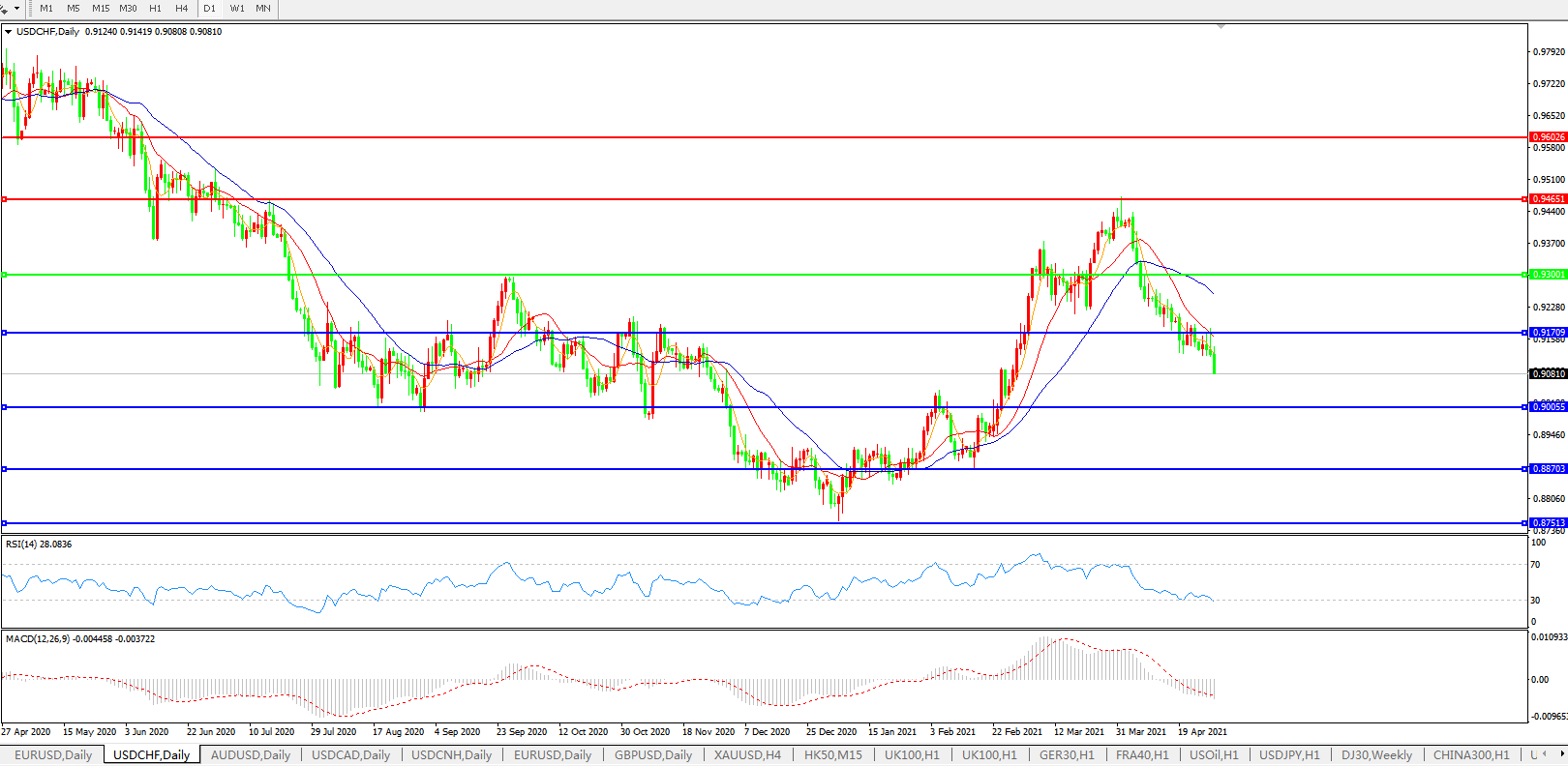 美元兑瑞郎USDCHF 日线图: