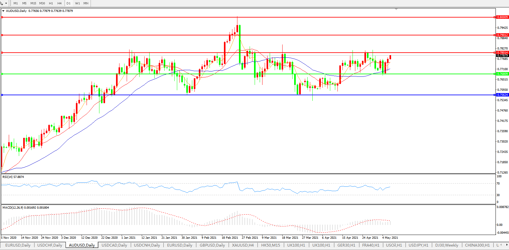 交易策略:0.7680上方看涨,目标0.7800、0.7900