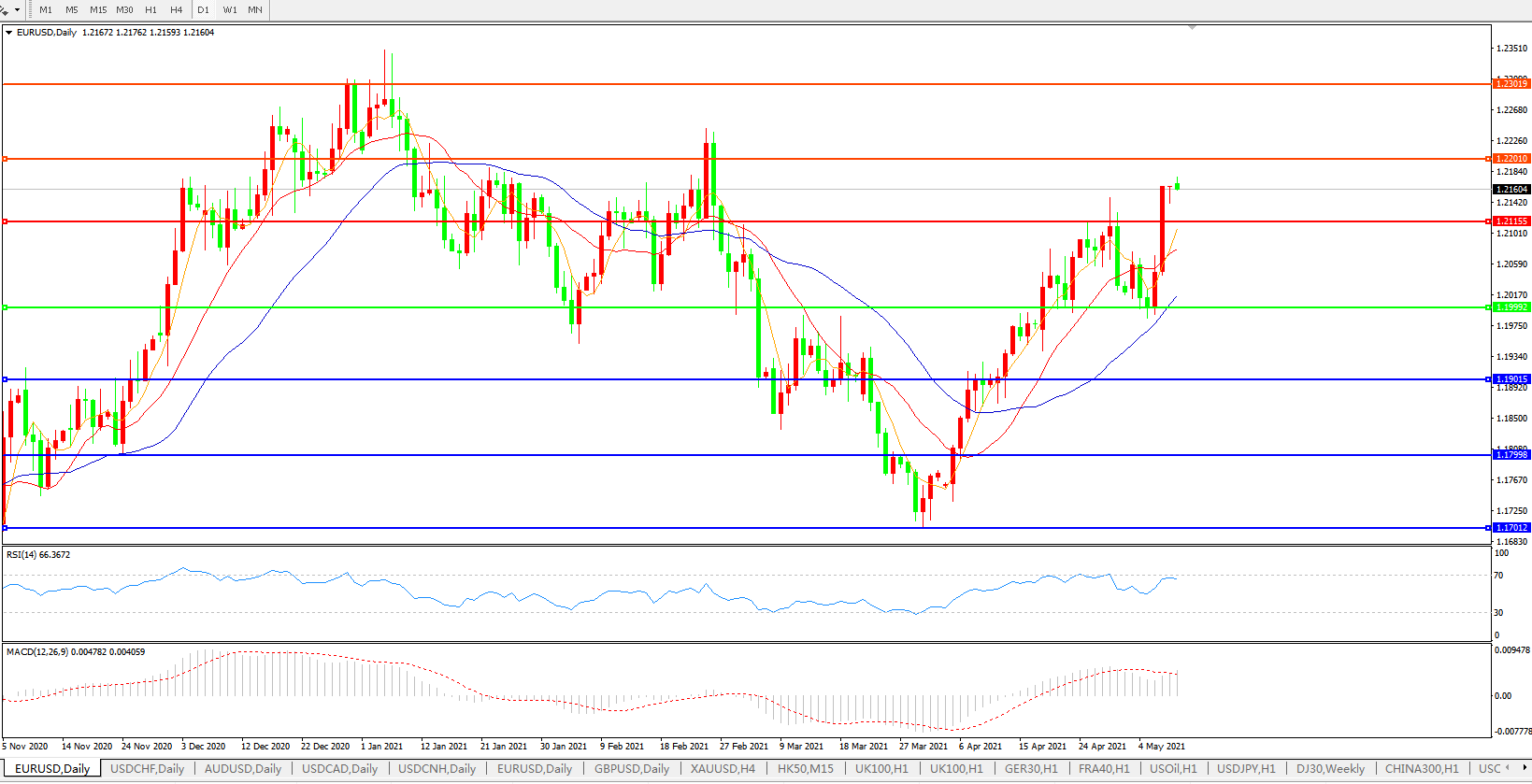 欧元兑美元EURUSD   日线图: