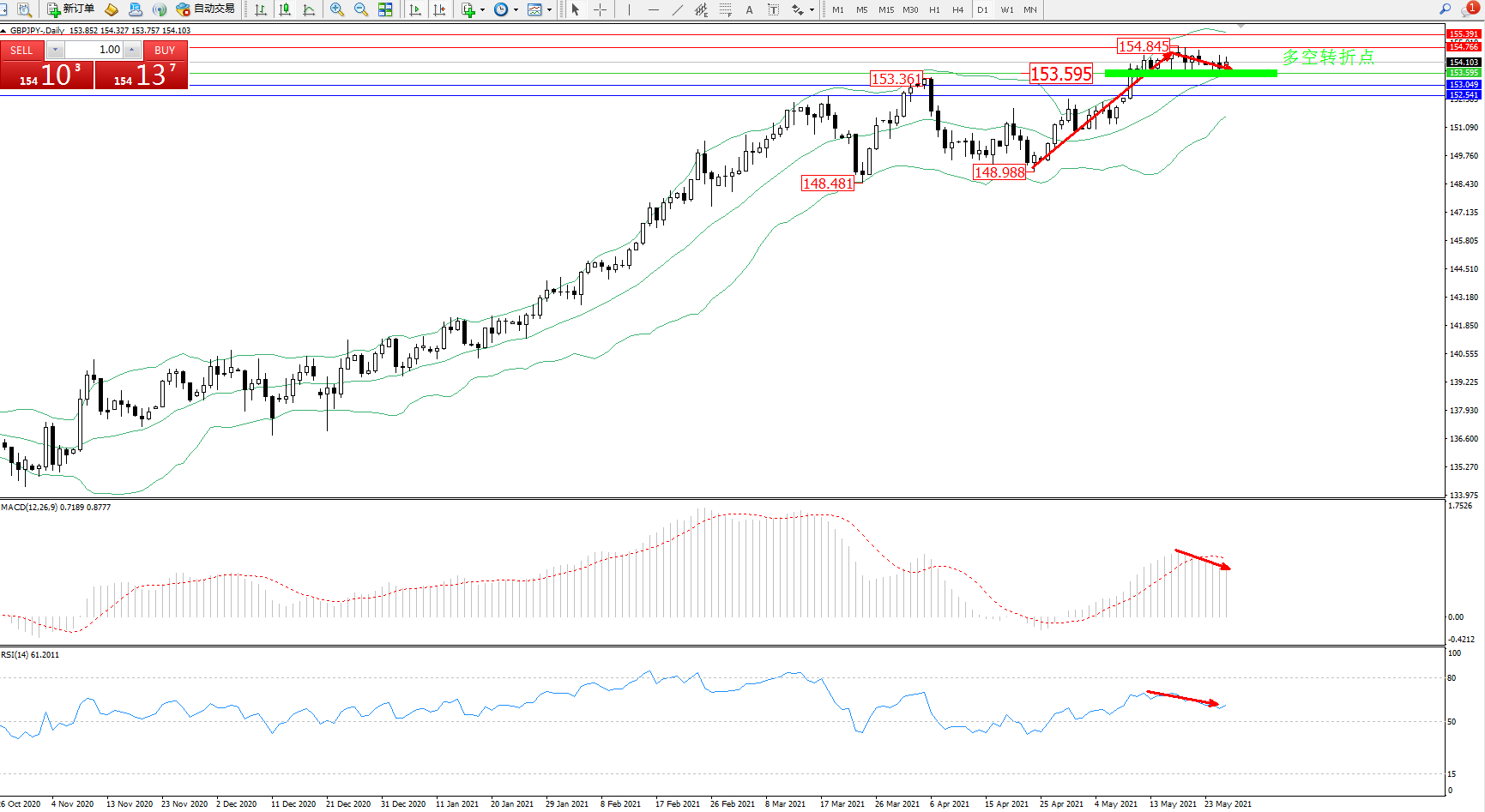 多空转折点:153.595
